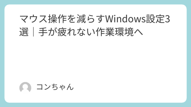 マウス操作を減らすWindows設定3選|手が疲れない作業環境へ